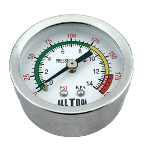 2″ Pressure Gauge, 1/4″ NPT, Lower Side Mount, 0-200 PSI