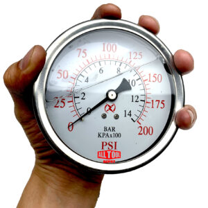4″ Oil Filled Pressure Gauge, 1/4″ NPT, Center Back Mount, 0-200PSI