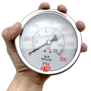 4″ Oil Filled Pressure Gauge, 1/4″ NPT, Center Back Mount, 0-300PSI